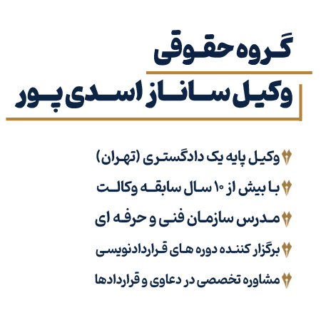 - مجموعه حقوقی وکیل ساناز اسدیپور با بیش از ۱۰ سال تجربه، خدمات تخصصی در زمینه دعاوی خانوادگی، تجاری و داوری ارائه میکند.